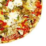 Tomate, Mozzarella, Oignons cuits, Thon, Poivrons, Aubergines